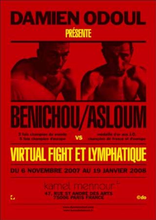 Frontaux, poings saisis dans leur élan révélant par la même occasion leurs « coups » spécifiques, Asloum et Bénichou se confrontent dans un instantané atemporel, comme arrêté. Le menu face à l’épais. La brute face au gracieux. Dans ce portrait en forme de Janus, les époques s’affrontent et ne se ressemblent pas. Authentique duel temporel.