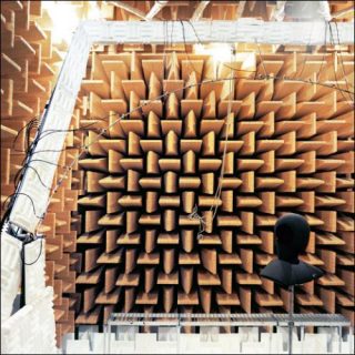 L’artiste présente ici les photographies réalisées dans des laboratoires dédiés à l’acoustique (industrie, science, création sonore). Il ne s’agit pas simplement de donner à voir la mécanique de production sonore, mais bien de capter une part de l’invisible des ondes acoustiques dans une pratique photographique du sensible. Ces laboratoires sont désignés par des noms étranges tels que chambre anéchoïque (sans échos), salle réverbérante, soufflerie aéro-acoustique. L’artiste a choisi d’interpréter ces lieux, ces laboratoires, en tant que photographe: son regard est en permanence travaillé par la transformation du visible en visuel. Comme un archéologue «il fouille» des constructions qui lui sont étrangères, le plus souvent ignorées du public, énigmatiques constructions mises à l’écart de nos espaces de vie et qui semblent appartenir à un autre monde.
