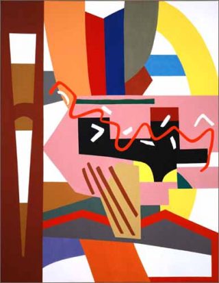 Enfin, le rythme de Arc en ciel, de Shirley Jaffe, naît de l’entrechoquement des formes et des couleurs vives, entre figuration et de l’abstraction. A la manière dont Éric Corne a conçu l’exposition: comme un jeu dans lequel des passerelles sont proposées au visiteur — laissé libre de suivre les itinéraires de son choix, loin des parcours obligés qui lui ont été inculqués…