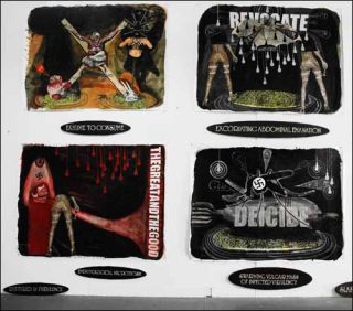 — Deicide, série «Reek of Lutrefaction», 2006. Aquarelle, collage, encre et acrylique sur papier. 200 x 150 cm.