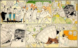 13. En vis-à-vis des œuvres,  il y a, comme l’indique le titre, de véritables trésors: les planches originales de Winsor McCay, le père de Little Nemo, de 1906, des planches originales de Hergé qui montrent la genèse de la ligne claire, soit une écriture graphique basée sur le cerne, la pureté, la lisibilité et qui, dans les planches présentées, provient d’un crayonné nerveux, tremblé, à l’instar des plus grands dessinateurs.