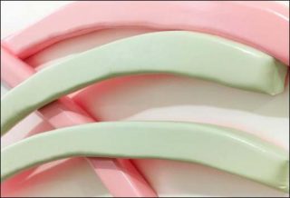 Le mot objet est en effet celui que Justin Adian emploie souvent, même si sa phase favorite du travail est celle consacrée à la peinture. Ainsi, de quatre à sept couches peuvent recouvrir chaque pièce, apportant de la transparence et de la profondeur, de même qu’une finition parfois craquelée renvoyant à l’apparence de la céramique. De là , naît une des autres ambiguïtés dans la lecture de ce travail: une tension qui s’accompagne d’une grande délicatesse, voire de fragilité. Et on l’imagine, de manière totalement anachronique, dans son atelier de Brooklyn œuvrant tel un orfèvre médiéviste.