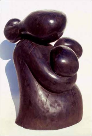 Les formes sont lovées sur elles-mêmes, comme dirigées vers l’opacité et la compacité de la matière du bloc de bois. La patine laisse paraître les veinules du bois, qui peuvent évoquer une chevelure ou seulement animer la surface.