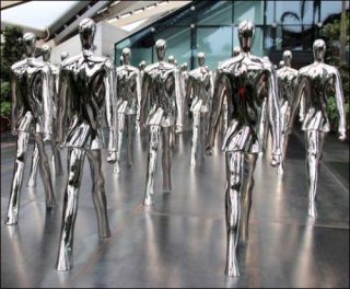 Dans la salle adjacente, sont exposée les Walkers. La foule des Walkers, bien qu’immobile, parce que soudée au sol, avance et recule simultanément, s’éloignant ainsi de son but lorsqu’elle croit s’en rapprocher.