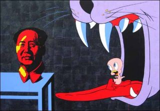 Persistance rétinienne, motif graphique ou idée fixe, «le petit père du peuple» est de toutes les toiles, de toutes les œuvres. Ziwei voit des Mao partout. Sur le vélin, le peintre brasse les références graphiques, Titi, le canari de dessin animé, rencontre le Grand Timonier.