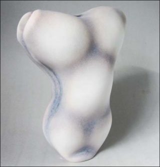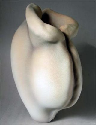 S’il ne sait nous expliquer le pourquoi, il connait les rouages de la pratique artistique qu’il a inventée et ses limites. Aucune rupture n’est venue troubler sa démarche artistique et le sens de son Å“uvre: traduire le vivant. Les sculptures présentées s’apprécient dans la plénitude d’un volume sphérique, dans la recherche d’une beauté universelle. Toutes les pièces sont en courbe et en tension ténue. Nulle mollesse, nulle trace gestuelle, nulle empreinte. Et pourtant, une impression de spontanéité, une acceptation du hasard lorsque la plaque de porcelaine lâchée, retombe sur une forme aléatoire. L’accord entre la technique et ce qu’elle donne à voir ou ressentir est intimement réussi.