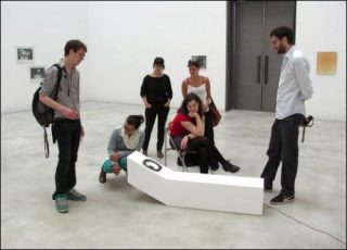 Pour son exposition, elle a choisi comme point d’exploration, la figure de séduction, en s’inspirant du thème du jazz let’s fall in love, du kama sutra ou encore des schémas de drague dans les lieux publics. Elle présente ainsi un ensemble d’oeuvres—une vidéo, des dessins et des cibles sonores—qui composent un univers instable de son, de voix et de figures et n’ont de cesse de déplacer les limites communément attribuées au statut de spectateur, d’auditeur ou d’interprète.