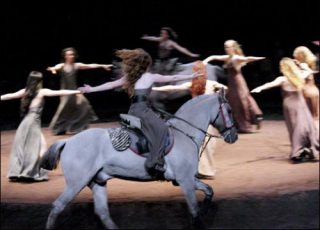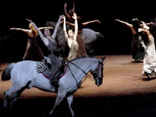 La beauté est présente, la force de l’alliance entre les groupes, l’attention portée à l’ensemble. L’écriture de Carolyn Carlson est perceptible : danseurs dos à dos, front à front, répétition de portés déplacés, d’entrelacements complexes . Les danseurs forment des carrousels réinventés, des lignes qui se font face, des lacis surprenants : voilà les danses folkloriques d’un lieu imaginaire. Guerrière et douce, la partition étonne pourtant. Chacun finit par ressembler à tous, pris dans les mêmes ondulations de jupes, de crinières, de chevelures d’hommes et de femmes. La composition est précise, le vivant instable. Chevaux parfaitement dressés et danseurs accomplis hésitent parfois, se décalent. La beauté se glisse là aussi.