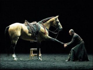 Entre danseurs et cavalières, entre danseuses et chevaux, se glisse dès les premiers instants la musique de Philip Glass, Music in Twelve Parts. Une boucle inexorable dont l’accélération et le vertige rattrapent rapidement les interprètes malgré la douceur apaisante du début de la pièce. Appuyée sur le rythme des battements du cÅ“ur, cette partition agace l’équilibre jusqu’à une sorte d’ivresse ou de nausée. Quelque chose de fort, rempli des recherches de Philip Glass sur les musiques traditionnelles. Pourtant la bande-son est parfois trop présente et fait regretter la force inégalable du silence.