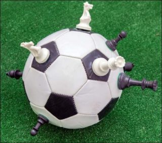 La philosophie de vie des artistes est associée à celle des sportifs de même que le sont leur représentation iconique. Nous voilà donc prêts pour un match étrange et schizophrène. Les gradins sont pleins à craquer et les supporters, les fans et les flâneurs applaudissent bruyamment, crient et nous encouragent par des messages écrits explicites. Ce ne sera que sur ce terrain à double vocation que nous pourrons décider quel point de vue adopter, révélant peut-être alors quelque chose de nous-mêmes.