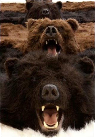 Cette fois-ci, cependant, les ours ne sont ni vivants, ni réels: il s’agit en effet de reproductions hyperréalistes, aussi romantiques qu’impressionnantes, de peaux d’ours. De ces tapis en peaux d’ours qui ornent le plancher des cabanes en rondins des Territoires du Nord-Ouest canadien ou auxquels les chasseurs aguerris réservent la place d’honneur dans leurs salons.