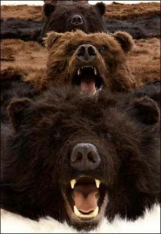 — Paola Pivi, What goes round. Art comes round, 2010. 25 fausses peaux d’ours.