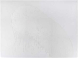 Un blanc de la démesure donc, tel que celui qui rythme l’énigmatique surface du tableau de Daniel Lergon. A la fois opaque et vaporeux, massif et pourtant agité, il reçoit la lumière avant de la renvoyer au centuple, dans des variations éparpillées que le spectateur découvre en se déplaçant devant. Le miracle tient aux propriétés utilisées par l’artiste: une toile blanche rétro-réfléchissante qu’il a recouvert très partiellement d’une laque blanche beaucoup plus mate.