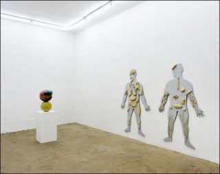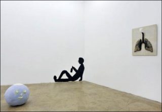Plus récemment, les deux artistes ont reproduit des dessins d’enfants. Adossée à un mur, l’ombre d’un mendiant tenant une bouteille et laissant couler une généreuse goutte de morve de son nez; semblables à des exercices de sciences naturelles dans lesquels il est demandé à l’enfant de placer en les dessinant des organes dans des silhouettes vides: deux corps aux contours identiques sur lesquels figurent d’étranges organes, des os désarticulés et dispersés. Reproduits en céramiques, ces dessins semblent se décharger de la grille d’interprétation dans laquelle ils s’inscrivent initialement. Les artistes ne semblent porter aucun jugement vis-à -vis de la maladresse ou de la véracité de ces représentations pour mieux révéler la violence des faits qui se bousculent en elles. Ces dessins qui furent les instruments à l’usage de leurs correcteurs deviennent les documents par lesquels Martin et Youle tentent une expérimentation au détriment d’une interprétation. En changeant d’échelle ces dessins sont soumis aux effets d’une machine à grossissement — et non de croissance — comme pour en prolonger les revendications initiales. En les détournant de leur cadre pédagogique et en leur refusant toute nostalgie, ils semblent rejoindrent les propos de Fernand Deligny pour lequel «un dessin d’enfant n’est pas une œuvre d’art: c’est un appel à des circonstances nouvelles» (Fernand Deligny, Les Vagabonds Efficaces, p 210.).