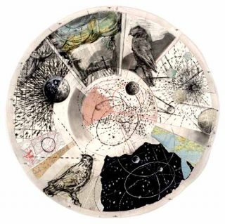 — Tondo – Birds and Sky, série «Preparing the Flute», 2006. Fusain et pastel sur papier. Diamètre 117 cm.