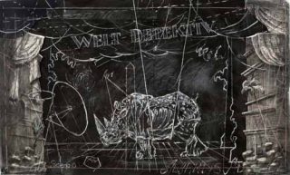 — Welt Detektiv – Large Rhino, série «Preparing the Flute», 2006. Fusain et pastel sur papier. 150 x 211 cm.