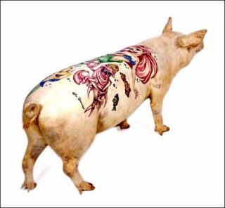 — Sebastien, 2006. Tattooed Pig Skin.