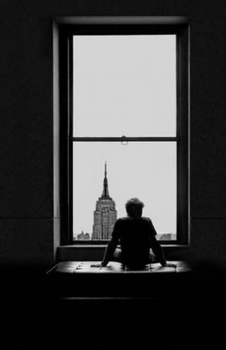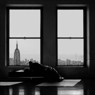 On ne sait rien de ce qu’ils contemplent: le bâtiment juste en face, le ciel, ou leur for intérieur. Luc Dratwa photographie la délicatesse des lignes des corps qui, semblables à des esquisses, se découpent à la fois sur la géométrie des imposantes baies de verre et sur l’Empire State Building dont le dôme aux formes irréelles ressemble à un décor de carton-pâte.