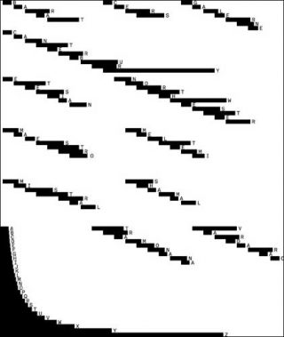 Depuis une dizaine d’années maintenant, Angela Detanico et Rafael Lain mettent en place un vocabulaire formel basé sur le langage et la typographie. Ils ont ainsi créé des modèles d’écriture concrète qu’ils appliquent à des phénomènes géographiques, scientifiques ou astronomiques. On se souvient notamment de leur manière d’écrire le nom de certaines étoiles à partir de la Helvetica Concentrated, une police obtenue par la concentration, sous la forme d’un point plus ou moins gros et dense, de la quantité d’encre nécessaire pour réaliser une lettre avec la police Helvetica.