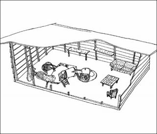 Les dessins de Joep van Lieshout expriment ses préoccupations à propos des rapports intérieur/extérieur et organe/enveloppe corporelle. Non sans humour, ses saynètes souvent causasses suscitent une curiosité ludique et pédagogique pour son dispositif. On irait bien se réfugier seul, à deux, à trois, et plus si affinités, dans ce cocon à la fois régressif et festif qu’est Womb House.