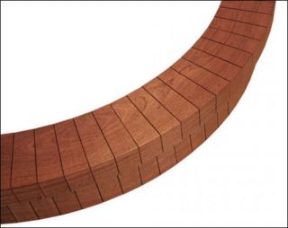 Les éléments en bois de forme trapézoïdale sont taillés dans un même tronc d’arbre qui peut atteindre 10 mètres de long.