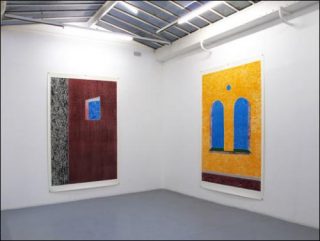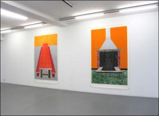 Nous avons ici affaire à la troisième interprétation réalisée en 2011 dans un format monumental (250 x 160 cm). L’artiste utilise neuf motifs sur les quinze de la série originale, représentant des éléments d’architecture et de mobilier d’une forteresse fictive: mur de briques, escalier, porte, table, fenêtre, cheminée. Chaque plaque de bois qui sert de matrice aux gravures est composée d’un puzzle d’essences différentes. Leur veinage devient un motif apparent, dessinant un jeu de textures.