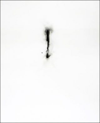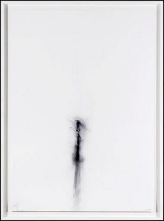 «Works on paper: the Saché series» tire son nom de la résidence effectuée par l’artiste à l’Atelier Calder à Saché en 2007. Les quatorze dessins présentés, tous du même format horizontal, ont été réalisés au graphite ou au pigment sur papier. Ils modulent une variation autour de l’empreinte: sur le papier laissé blanc viennent s’inscrire les rémanences plus ou moins insistantes d’un poisson ou d’une corde; poisson encore frétillant, cordage saisi au vol, venus l’un comme l’autre s’abattre de plein fouet sur la surface vierge, un choc dont l’impact se mesure aux projections de matière qui en brouillent la lisibilité.