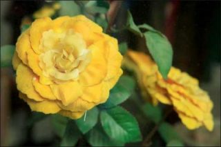 Cette valeur esthétique, décorative même, des fleurs, est annoncée avec force par le recours à une photo murale de jardin fleuri qui occupe tout un mur. On est immergé par le grand format dans un Eden aux forts contrastes, qui semble presque trop beau pour être vrai. La forme de la photo murale, seul élément “in situ” de l’exposition, permet de jouer avec espièglerie le jeu du papier peint, soit un motif décoratif qui n’importe pas en lui-même, mais qui peut devenir support d’un autre élément.