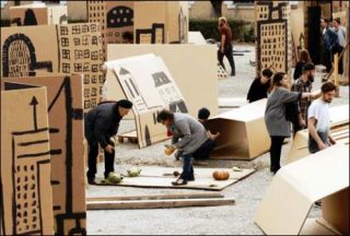 Pour cela s’est imposé à Jordi Colomer le besoin de créer un monde qui — se montrant pure construction, pur décor — pourrait admettre dans son sein ces transformations, avec des règles et lois propres. Un grand décor qui ne suivait aucun plan pré-établi, mais qui trouve sa place à chaque fois, qui se fabrique devant la caméra, qui se fait «avec ce qu’on a», et qui admet des actions imprévues à l’intérieur.