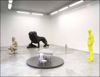 Les sculptures sont authentiques, elles sont le fruit de relevés précis et scientifiques, elles sont incontestables, mais en même temps elles soulignent tout ce qui leur manque pour être en prise avec la réalité, que ce soit la couleur, le mouvement, l’échelle. Elles perturbent la réalité, elles la rendent plus pénétrante. Elles ont une autorité sur le réel. Les spectateurs paraissent géants à côté d’elles. Le jeu d’échelle qu’elles imposent remet en question leur taille. La sensation est étrange. Elles misent sur la contradiction qui existe entre leur présence et leur illusion. Elles sont incontournables, presque réelles, et, d’un autre côté, elles sont la preuve d’une impossibiltié. Rhinocéros déjà jouait sur ce registre de proche et de lointain, de réel et d’irréel.