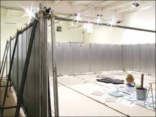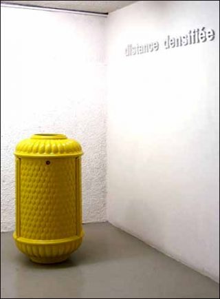 L’édition 2005 présente une palette étendue des rapports possibles à cet espace : de l’immixtion subreptice et poétique (Claude Horstmann), à l’enclave qui, d’autorité, impose une occupation spatiale et symbolique. Ainsi l’installation Robespierre de Hidéo Morié, créée antérieurement pour l’inauguration d’une structure municipale éponyme : une palissade de tôle ondulée, solidement maintenue par des tubulures d’échafaudage, délimite un périmètre qui évoque l’un de ces chantiers interdits au public. Que l’on a en effet le sentiment de pénétrer par effraction, en foulant une bâche et du carton, jonchés de textes, consacrés à la Révolution et la guillotine, et de photographies : têtes de suppliciés, ou portraits, par Nadar, d’artistes du XIXe siècle. Dans l’enceinte se dresse une guillotine, abandonnée là avec d’autres objets de rebut : vieux frigos, casiers, tréteaux rouillés, affiches et photocopies éparpillées au sol. Et des têtes, prises au piège. Des choux chinois, à vrai dire, qui se faneront au fil du temps de l’exposition : métaphores improbables pour le spectacle, refoulé, de la mort et de l’exaltation révolutionnaire.
