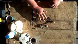 Les histoires racontées dans l’installation L’Œil et la Table font s’interpénétrer fiction et histoires vécues par l’auteur. Narrées de manière décousue, les origines et les «rencontres» avec leurs utilisateurs de différents yeux de verre, sont présentées dans une projection filmique en vue plongeante. Le dispositif renvoie à la confession, sans se départir d’un certain pathos illustratif.
