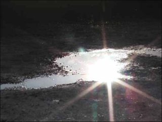 — L’oeil et la table, 2006. Table en bois. Film vidéo 16.