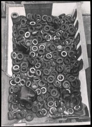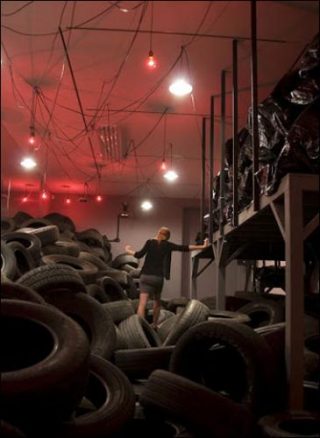 Aujourd’hui pour les 40 ans du CAPC, 40 tonnes de pneus sont déversées dans la nef du CAPC. Et Yard est «réinventé». Environnement culte de l’artiste américain Allan Kaprow, Yard connaît dès sa première intrusion dans la cour de la Galerie Martha Jackson à New York en 1961, le succès. Les visiteurs se déplacent tant bien que mal sur des piles de pneus qu’ils réarrangent à volonté. L’art et la vie se confondent. Depuis, Yard se réinvente plusieurs fois par an dans le monde, à l’intérieur comme à l’extérieur.