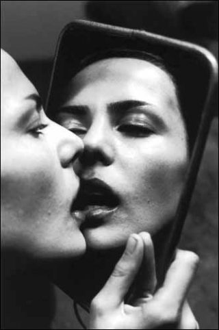 Une autre série met en scène une femme aux yeux recouverts de sparadraps et aux seins nettement visibles sous le transparent soutien gorge noir. Sur le deuxième cliché, elle écarte les bonnets de son sous-vêtement, découvrant ses seins, et sur le troisième, enfonce le doigt dans un de ses tétons tout en continuant à fixer l’objectif avec ses yeux aveugles. Jouant sur le dualisme du manifeste et du caché ainsi que sur l’analogie formelle œil/sein, ne peut-on y voir une métaphore du voyeurisme, pratique qui a manifestement sa place dans le propos de l’artiste ?