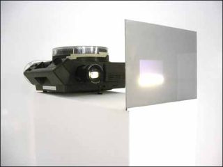 L’espace entre le projecteur/lumière et l’écran n’est plus laissé vacant, il est tout simplement devenu sculpture. Mais c’est une sculpture qui apparaît presque aussi immatérielle qu’une sound sculpture car elle peut être parasitée, non pas par la voix, mais par une présence physique. L’œuvre n’existe que lorsque le spectateur se tient de côté profitant du spectacle en décalé, tout en connaissant son statut de parasite et d’acteur.