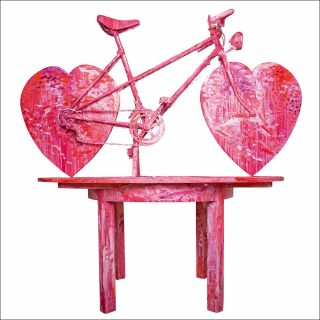 Sur une table en bois badigeonnée de laque rose se tient un vélo, lui aussi intégralement peint en rose, dont les roues ont été remplacées par deux énormes pièces plates en forme de cœur. Cette œuvre intitulée Biographische Skulptur n°7 fait partie d’une série de sculptures autobiographiques dans lesquelles sont incorporés des biens personnels des deux artistes. Ces sculptures forment ainsi les jalons d’un parcours où art et vie ne font qu’un. Autre création à vocation autobiographique, celle intitulée Non rien de rien date de 1991. Sur une colonne recouverte de peinture bleue trône une photo du duo, plus que jamais identifiable comme couple.