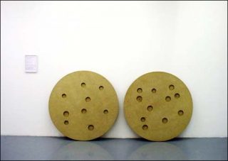 De son côté, avec Pop Pop Chocolate Chip Cookies, Rob Pruitt propose une pièce fondée sur le décalage. En guise de cartel, une recette écrite à la main est accrochée au-dessus de deux disques de bois tout comme sortis de l’usine. Le caractère manuel de l’écriture s’oppose au caractère industriel des disques, l’attente de gâteaux faits maison est déçue par leurs fac‐similés. Serait‐ce une satire de la publicité et de son cortège de mensonges ? Sans doute. Et après ?