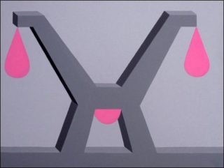 Yves-Eric 2boy met en place un système simple, un système binaire favorisant la sérialisation: fonds aux couleurs froides, bleus, gris, parfois verts. Au milieu de cet univers, une entité biomorphique rose, passive et molle, apparaît sous la forme d’une goutte. Tout se passe comme si le système 2boy démultipliait les possibilités narratives des accidents auxquels cette goutte pourrait être confrontée.