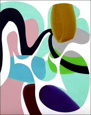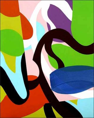 Difficile de dire en effet dans quel ordre se superposent les zones de couleur. Par des jeux de transparence, de recouvrement et d’entrelacement, le devant et le derrière, le dessous et le dessus, sont permutables, sans qu’il soit possible de trancher définitivement.