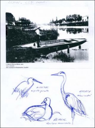 L’influence de Marcel Duchamp et de son univers, dans lequel elle s’est immergée et qu’elle a exploré de façon approfondie et systématique, est manifeste dans l’exposition. Elle s’enrichit des croisements répétés avec la figure de Guillaume Apollinaire qui, comme Marcel Duchamp et elle, nourrissait une passion pour le calembour ou la contrepèterie. Les références à l’artiste et au poète sont réunies dans l’une des entrées du travail qu’elle a effectué entre 2007 et 2008, Research Notes, dans lequel elle met en exergue les relations entre leurs œuvres et leurs textes, à travers une installation regroupant dessins, notes manuscrites, collages, cartes postales, notices de dictionnaires et reproductions d’œuvres.