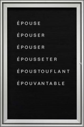 Mots voisins ou similaires, citations ou affirmations se trouvent transférés dans le champ de l’art pour appuyer les contradictions, les déplacements de sens ou les attentes éventuelles qu’ils suscitent. Les éléments textuels — comme dans sa série Vitrines mise en scène dans un mobilier «administratif» — tendent à encourager les associations de pensées autour de l’importance de l’art et de sa relation à la vie même.