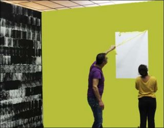 Pour Olivier Nottellet, le travail “consiste à émettre une hypothèse dans un espace: que ce soit une feuille, une salle, une définition”. L’espace de l’exposition va devenir non pas le lieu de la résolution, mais la formulation de cette hypothèse. Il va s’agir de mettre en situation, d’opérer des glissements, de travailler des articulations, d’utiliser “le paradoxe du mur érigé, obstacle au regard et lieu de perspective, de projection” pour tenter des raisonnements insensés et souvent tronqués que le spectateur s’efforce de suivre et de compléter. Et l’on circule dans ces espaces à la recherche d’une résolution qui échappe en même temps qu’elle se construit; on évolue dans ces lieux comme dans un espace familier plongé dans le noir: on avance à tâtons, à la recherche d’une forme que l’on connaît, d’un angle que l’on identifie, d’un couloir dont on maîtrise les dimensions, on suit un pan de mur comme le fil d’une pensée. Olivier Nottellet organise une mécanique du désordre qui place le spectateur en position d’instabilité, en état de trouble; un trouble qui, étrangement, se révèle presque apaisant. Les éléments qui constituent ses édifices ne tiennent qu’à un fil, une feuille, un bord de fenêtre. Un architecte, donc, mais un architecte qui construit des bâtiments sans fonction.